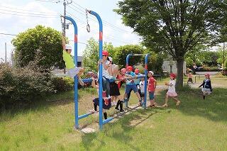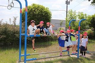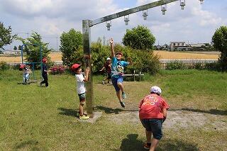 続いて,みずほ工業団地方面へ。「せんせぇ~,暑いで~す…。」と,愚痴をこぼしていた子供たちも,公園に着くと大はしゃぎ!