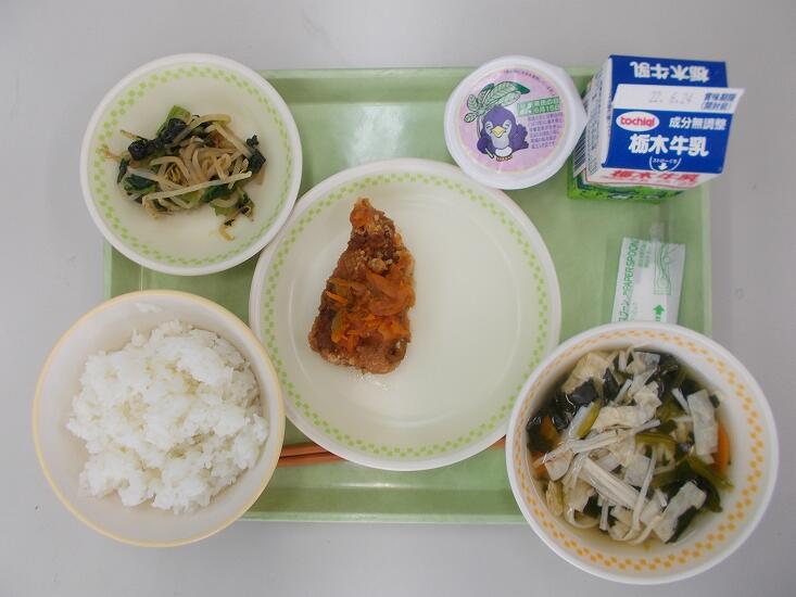 とちぎ県民の日献立(6/15) 投稿日時 : 2022/06/15 大平東小管理者 6月15日、今日はとちぎ県民の日です。今日の給食は県民の日献立。栃木県にゆかりのある食材を使った献立でした。ご飯、モロのオーロラソース、磯香あえ、ゆばのすまし汁、県民の日いちごゼリー、おいしくいただきました。 {{options.likeCount}} {{options.likeCount}}