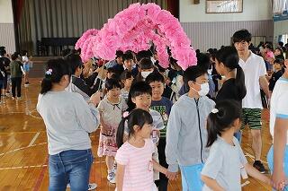 3校時に,ふれあい集会が体育館で行われました。「友達に温かい気持ちで接していこうとする気持ちを高める」ことを主なねらいとして,なかよしグループを主体に活動が行われました。