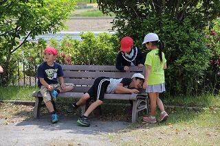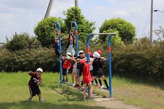 続いて,みずほ工業団地方面へ。「せんせぇ~,暑いで~す…。」と,愚痴をこぼしていた子供たちも,公園に着くと大はしゃぎ!