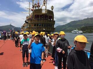 さわやかな好天の下,箱根関所跡を見学し,海賊船に乗って芦ノ湖に出港です!