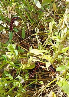 体中にトゲがあり,色も毒々しいので「毛虫!」「刺されたら危ない!」と思ってしまいますが,実は『ツマグロヒョウモン』というチョウの幼虫です。