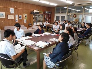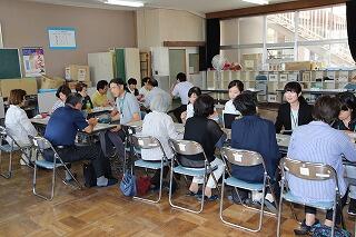 ◇授業の後は,参観者全員で授業研究会をしました。よかった点・改善点などについて意見を述べ合い,よりよい授業法を検討していきました。