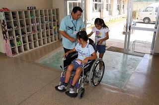 4年生の総合的な学習の時間の一環で,「白杖・アイマスク・車椅子体験」が行われました。