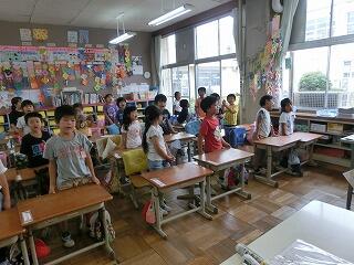 初日の7月1日(月)の朝は,運営委員会の児童が職員室をはじめ各教室を回って挨拶し,2日目からは,担当になっているなかよし班が回っています。