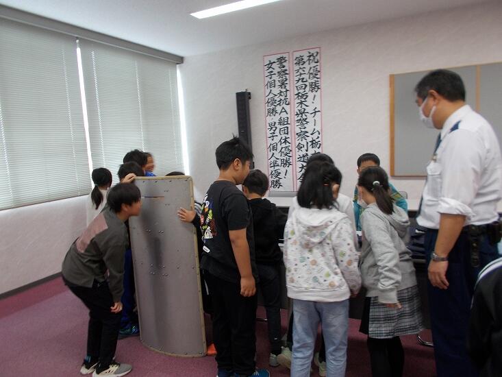 11月13日、3年生は校外学習を実施しました。午前中は警察署、午後は消防署の見学でした。警察署では、警察官が使っているいろいろな道具を見せていただいたり、パトカーにも乗せていただいたりしました。お弁当を食べた後は、消防署の見学へ向かいました。消防署でも消防士さんが使っている道具を見せていただいたり、消防車を見せていただいたりしました。私たちの安全を守るために、警察署や消防署では、いろいろなお仕事をしていることが分かりました。警察署、消防署のみなさん、お忙しいところ、ありがとうございました。