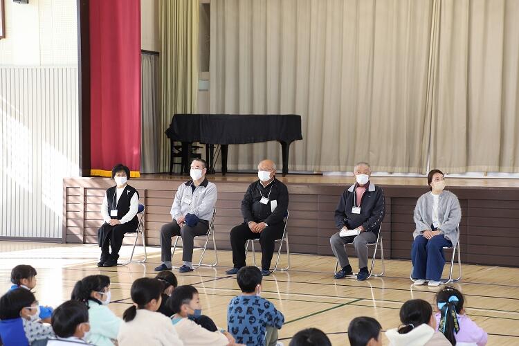 11月20日、ボランティアさんへの感謝の会を実施しました。この日学校にお呼びしたのは、地域コーディネーターさん、読み聞かせボランティア代表の方(都合でご欠席)、スクールサポーターさん、見まもり隊代表の方(3名が参加)でした。感謝の会では、児童からのお礼の言葉発表や、ボランティアさん宛に児童が書いた手紙の贈呈などを行いました。また、ボランティアさんから一言ずつ挨拶もいただきました。