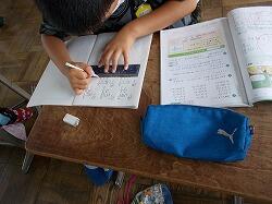 ミニ定規をつかって、筆算の横線を引いています。