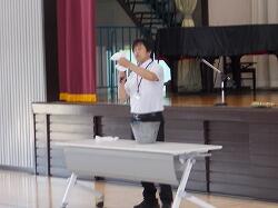 校庭で行う予定でしたが、雨天のため体育館で行いました。