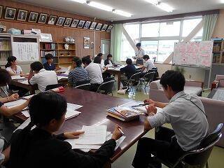 ◇授業の後は,参観者全員で授業研究会をしました。よかった点・改善点などについて意見を述べ合い,よりよい授業法を検討していきました。