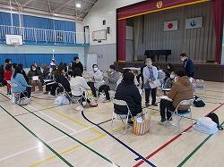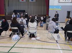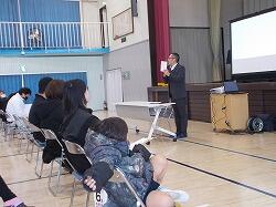 体育館で入学説明会とハッピー子育て講座が行われ