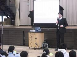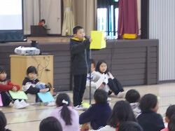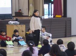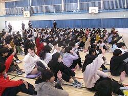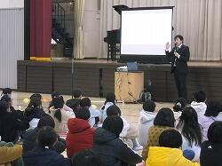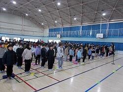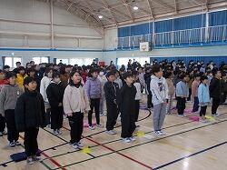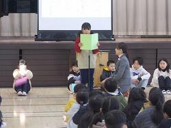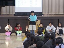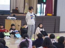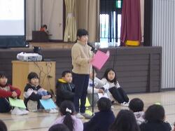 代表児童がピアノ伴奏をして、みんなで校歌を歌