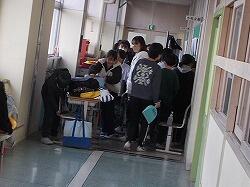 廊下に出して、放課後に教職員で床のワックス