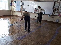 教室の床がピカピカになりました。