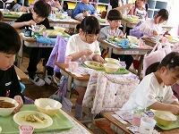 大平地区4校の小学1年生にとって、初給食だそうです。