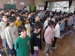 4~6年生は体育館で式で歌う歌の練習。
