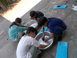 汚れた靴下の手洗いを体験しました。