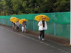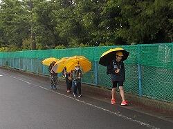 小雨降る中、元気に登校。