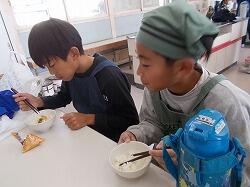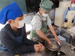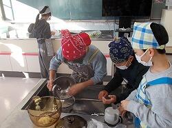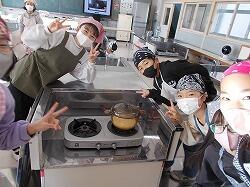 ガスコンロで調理しました。米を洗い、鍋に米と