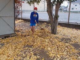 掃除の時間には体育小屋周辺の銀杏の落ち