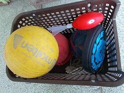 休み時間に外で遊ぶときに使う用具が各クラスに
