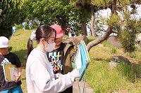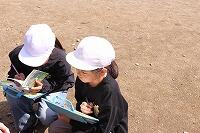 4年生は、理科「春の生物のようす」で、温度計で気温を図ったり、手帳サイズの生物図鑑をもち、自分が見つけた生物は何かを調べたりしながら観察していました。