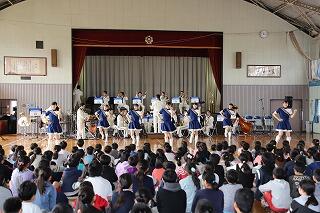 ◇『山の音楽家』では,楽器紹介をしたくださいました。そして,『海の声』の後は,寸劇『名探偵コナン(シマダ)』を使って,子供たちに防犯の約束「いか・の・お・す・し」を指導してくださいました。「本当に,おまわりさん?」と思うほどの芸人顔負けの爆笑を誘いつつも,子供たちの防犯意識をしっかりと高めてくださいました。