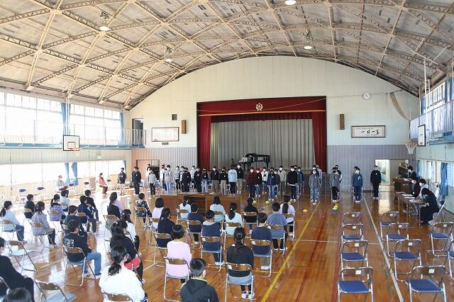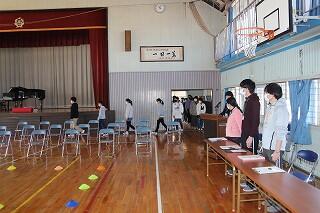3月19日(土)の卒業式に向け,卒業式予行がありました。新型コロナウイルス感染拡大防止のため,今年度の卒業式は,在校生を代表して5年生のみが参加し,保護者も各家庭2名以内の参加と制限し,さらに来賓はなしで実施します。座席の間隔をできるだけ開け,窓も大きく開けて換気に努め,対面で実施します。