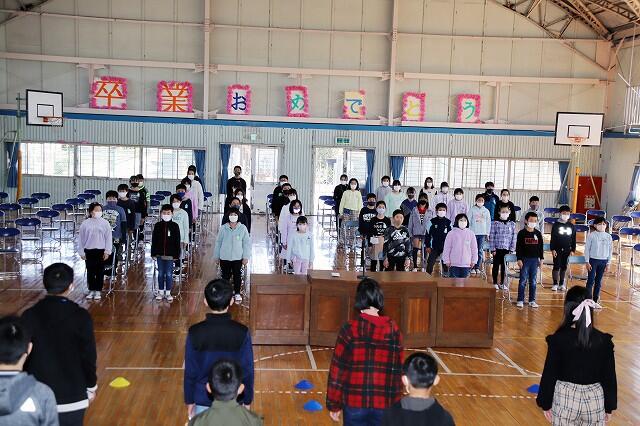 4年生がリードして,卒業生を迎え,別れの言葉を贈り,とてもあたたかい式となりました。春が感じられる好天に恵まれ,6年生の希望に満ちた明るい門出を象徴しているかのようでした。