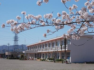 校庭東側の桜は三分咲きといったところです。