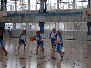 雨天のため体育館で楽しく「かけっこ」の学習を
