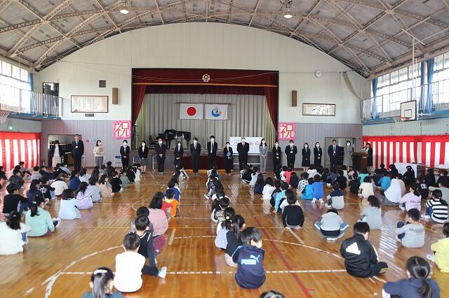 ◇児童の感覚と換気に努めました。新しい先生方の入場を待っています。
