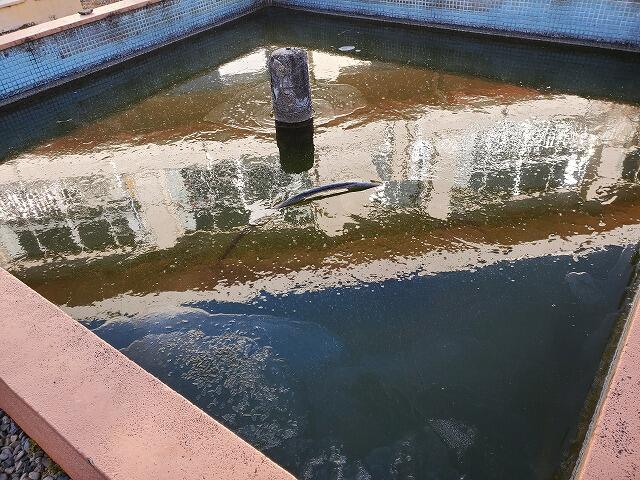 ◇中庭の池は,氷でびっしりと覆われていました。