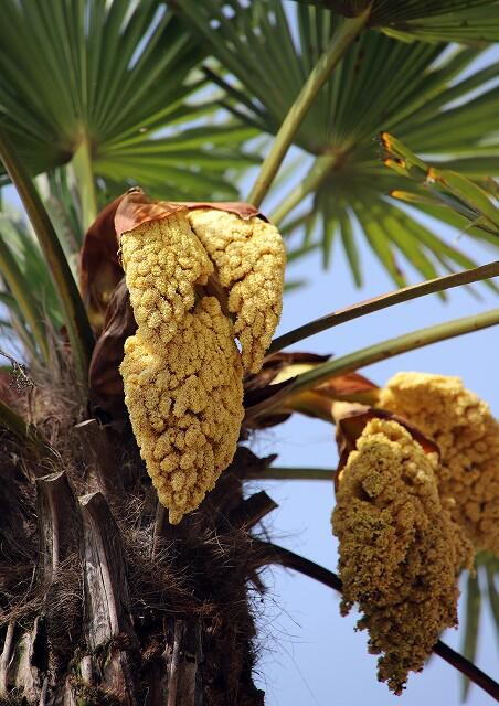 ◇シュロの木に咲いた花です。シュロは,ヤシの仲間です。(多目的教室前)