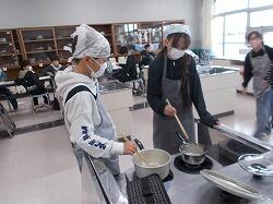 5年生が家庭科の授業でご飯をみそ汁を作って