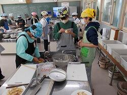 5年生が家庭科の授業でご飯をみそ汁を作って