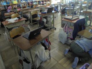 校内の児童は揺れが収まった後、落ち着いて机の下から出て避難経路を確認し避難しました。