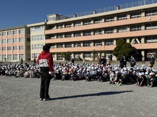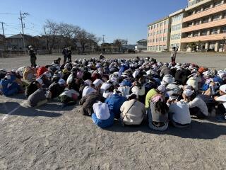 地震発生後に火災が起きた場合を想定した避難訓練を昼休みに行いました