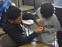 星次に、薬物の誘いを断るロールプレイングを代表児童が行いました。「リラックスできるよ」「自家製だから安全だよ」「ハッピーになれるよ」など何度も言われると、断る難しさを感じたようです衝撃・ガーン