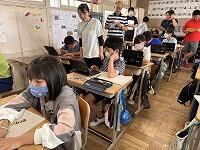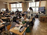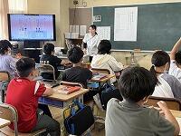 大宮北小では、NIEルームに保健委員、そして6年生の各教室にはそれ以外の児童が集まり、スクリーンや大型テレビを通して、他校との交流をしながら参加しました
