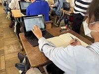 1年生が、メタモジを上手に操作していて、すばらしい。さらに、ICT・紙・黒板等をうまく組み合わせて、それぞれのよさを活かしながら効果的に活用していた。