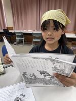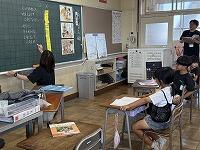 具体例を示すことで、「絵は大きく描くといい」「文字は、多すぎない方が分かりやすい」などと、子どもたちに気付かせ、引き出しながら、かるたを作るポイントを確認していました。