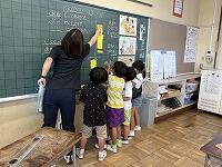 校内見学の後は、年長児のみなさんから学校についてのたくさんの質問が出てきました。