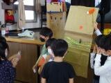 カッターナイフで窓やドアを作ります。どんな建物を作ろうかなひらめき