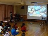 図書館の施設の様子や本の種類、借り方や返し方など動画を使って、わかりやすく説明してくださいました。子どもたちは、初めて知ることに興味を高め、メモをたくさん書きました。また、事前に質問を送っていたので、知りたいことについて丁寧に説明してくださいました。