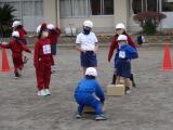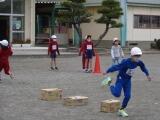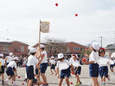 玉入れでは、1回戦で段ボールに玉を貯め、2回戦目で貯めた玉をかごに入れました。