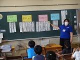 子どもたちは、担任の先生やボランティアさんが出したカードを見て答えていきます。