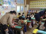 2年生が図工の時間に初めてカッターを使いました。持ち方や安全な使い方を先生が丁寧に指導しました。実際に使うときには、みんな緊張していましたが、ボランティアさんがやさしく声をかけてくださって、安心して使うことができました。