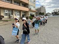 今回の校外学習は、歩いてお店に行ってきました出発する前に、「とちぎ未来アシストネット」の方々に挨拶をしている様子です。