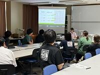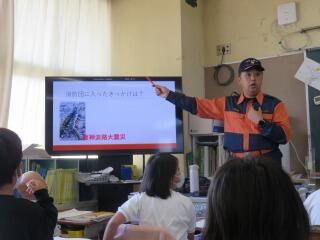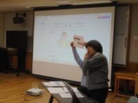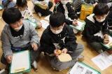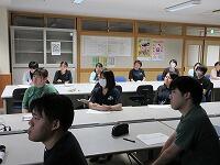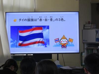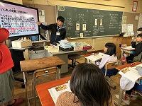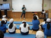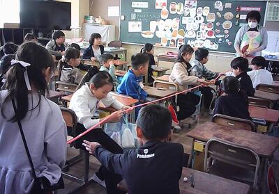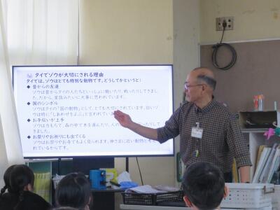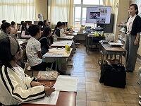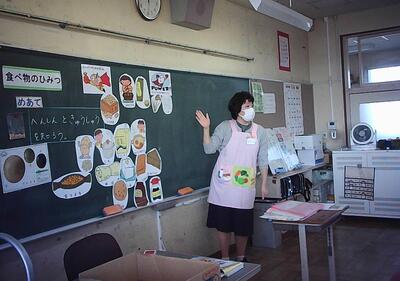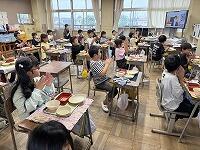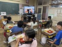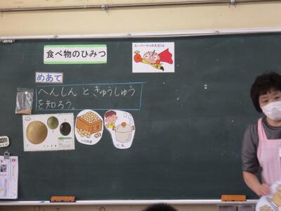 栄養教諭の先生の説明を動画撮影して、大型テレビに映して視聴しました